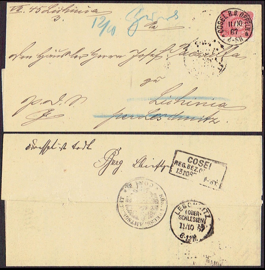 1867 Cosel R.B.Oppeln (Koźle), obwoluta listu który na skutek złego adresu wrócił do nadawcy. | |