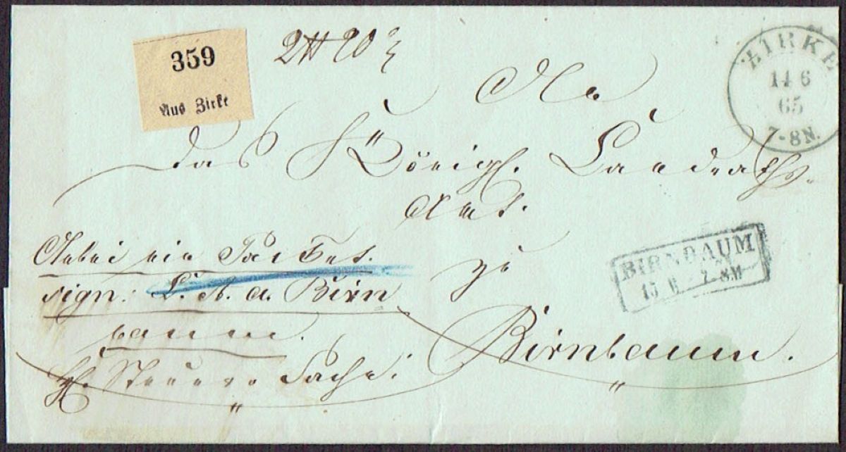 1865 Zirke (Sieraków), list towarzyszący paczce wysłanej do Birnbaum (Międzychód). | |