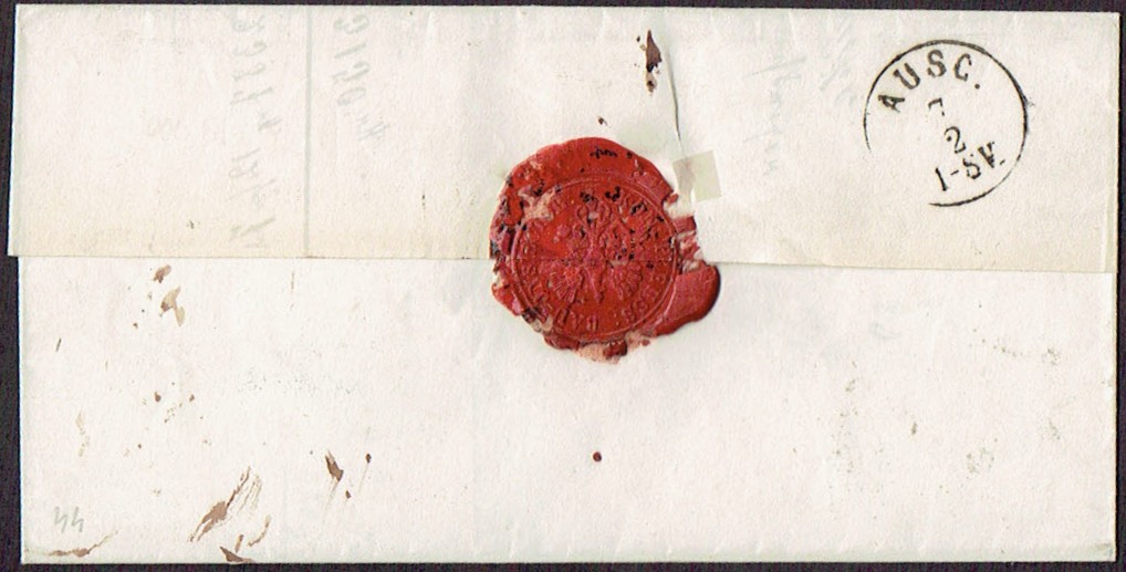 1870 list z Krakowa do Wiednia, na odwrocie stempel odbiorczy. | |