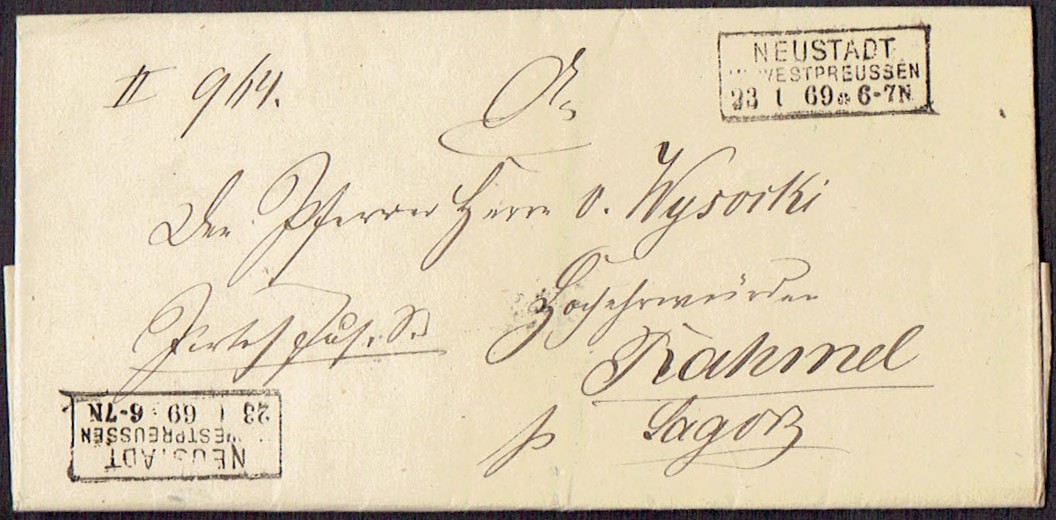 1869 Neustadt in Westpreussen (Wejherowo), kompletny list składany wysłany z Wejherowa. | |
