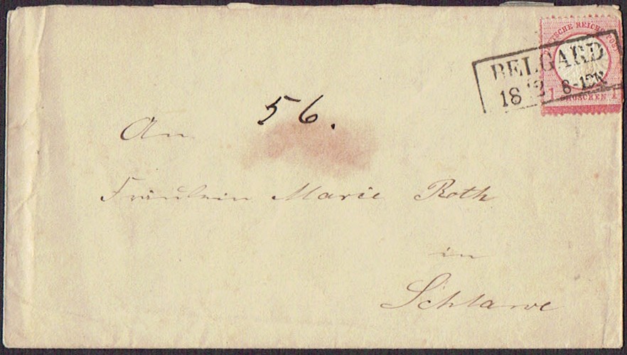 1872 po, Belgard (Białogard), koperta listu wysłanego z Białogardu. | |