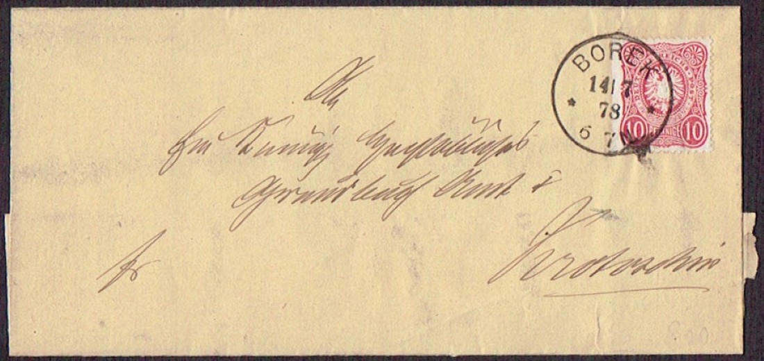 1878 Borek (Borek Wielkopolski), obwoluta listu wysłanego z Borka do Krotoszyna. | |