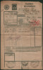 1910 pocztowy adres przesyłowy do paczki pobraniowej wysłany 24.X z Krakowa do Zurychu, formularz z napisami niemieckimi i francuskimi, ładnie udokumentowany obieg pocztowy, dekoracyjna całość w bardzo dobrym stanie zachowania. | Mi.143, 145, 146, 151 |