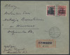 1918 PIOTRKÓW - FANTAZYJNE FAŁSZERSTWO WYDANIA LOKALNEGO - dwuwierszowy nadruk POCZTA POLSKA na austro-węgierskich znaczkach opłaty, zmieniający bardzo ładny cenzurowany polecony list z oryginalnego obiegu na fałszerstwo na szkodę filatelistów, którego nie można przypisać żadnej określonej miejscowości, dodatkowo fałszywy stempelek "MILITARY GEHAIMNIS", na odwrocie kasownik odbiorczy Berlin 24.6; niecodzienny walor w bardzo dobrym stanie zachowania. | Fi.58, 60 FFi |