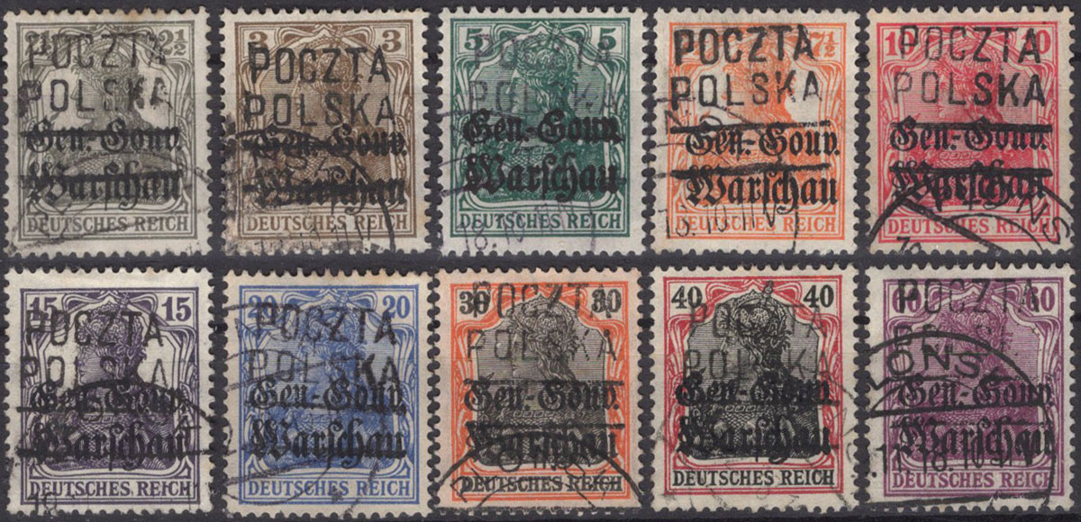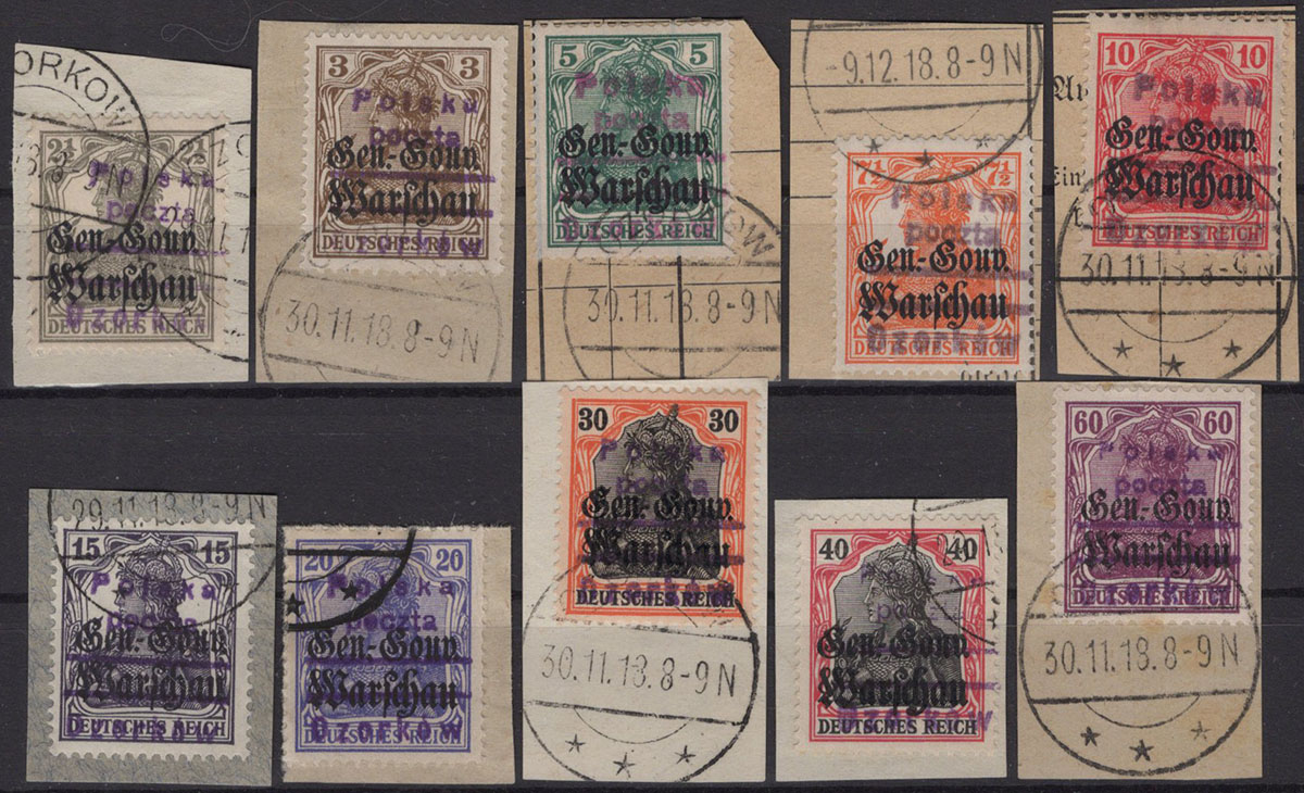 1918 Płońsk, zestaw znaczków z nadrukiem lokalnym. | |