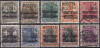 1918 Skierniewice, zestaw znaczków z nadrukiem lokalnym Skierniewic, część z nadrukami w barwie czerwonej, część w fioletowej, podlepki, gwarancja Ryblewski. | |