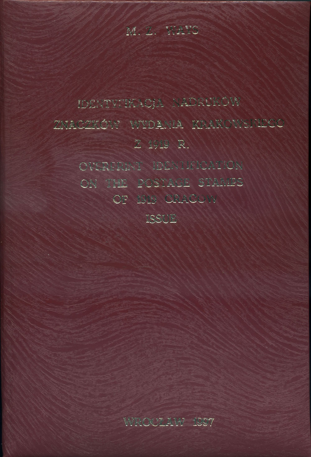 1997 wydanie krakowskie, "Identyfikacja nadruków znaczków Wydania Krakowskiego z 1919 r." autorstwa Mariana Waysa, przydatne tabelki z wymiarami nadruków i pokazane charakterystyczne ich usterki, 60 stron, twarda obwoluta. | Fi.54 |