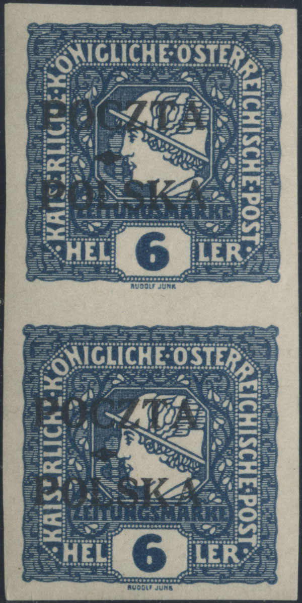 1919 wydanie krakowskie, parka znaczków z nadrukiem formy IIC z poz. 37-47, gwarancja i oznaczenie Jendroszek. | Fi.52a Mi.51 |