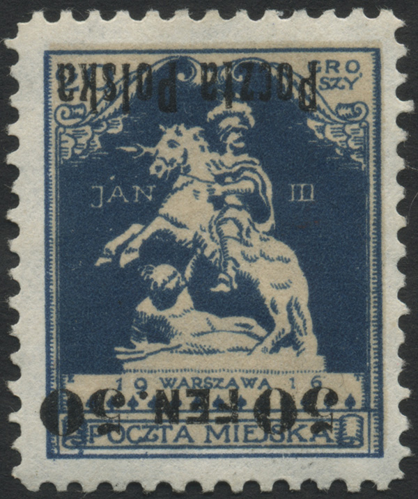 1918 seria pomnikowa, znaczek z nadrukiem odwróconym, gwarancja Petriuk. | Fi.4No Mi.4K |