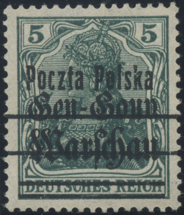 1918 wydanie PP/GGW, znaczek z nadrukiem GGW farbą anilinową, fotoatest. | Fi.6d II Mi.6 |