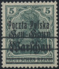 1918 wydanie PP/GGW, znaczek z nadrukiem drugiej formy z błędem "obrócone k", gwarancja i oznaczenie Schmutz. | Fi.6aB7 Mi.6 |