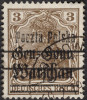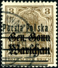 1918 wydanie PP/GGW, narożny kasowany znaczek za 3 fen. z nadrukiem drugą formą na anilinowym nadruku GGW, z opisanym ostatnio przez L.Schmutza i K.Sztabę błędem na poz.100 "cienka litera c" (błąd na takim znaczku Fi.800.-), zielona otoczka nadruku to cecha anilinowej farby, gwarancja i opis "anilina" Gryżewski. | Fi.6dII B Mi.6 |
