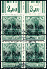1918 wydanie PP/GGW, podstawowa seria w czworoblokach z nadrukami z I i II formy, w tym znaczki z rzadkimi nadrukami drugiej formy; Fi. 6, 9II i 13II z gwarancją. | Fi.6-16 I-II Mi.6-16 I-II |