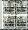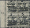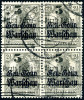 1918 wydanie PP/GGW, czworoblok znaczków z nadrukiem drugiej formy, lewy dolny znaczek z błędem "podniesione s", gwarancja i oznaczenie Melnik. | Fi.8IIB6 Mi.14II |