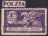 1919 pierwsza sesja Sejmu Ustawodawczego, próba znaczka z drukiem podwójnym w barwie definitywnej, gwarancja Miszczak. | Fi.109P4 Mi.125 |