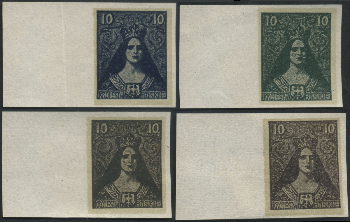 1919 cztery niezrealizowane projekty znaczków z podobizną królowej Jadwigi. | |