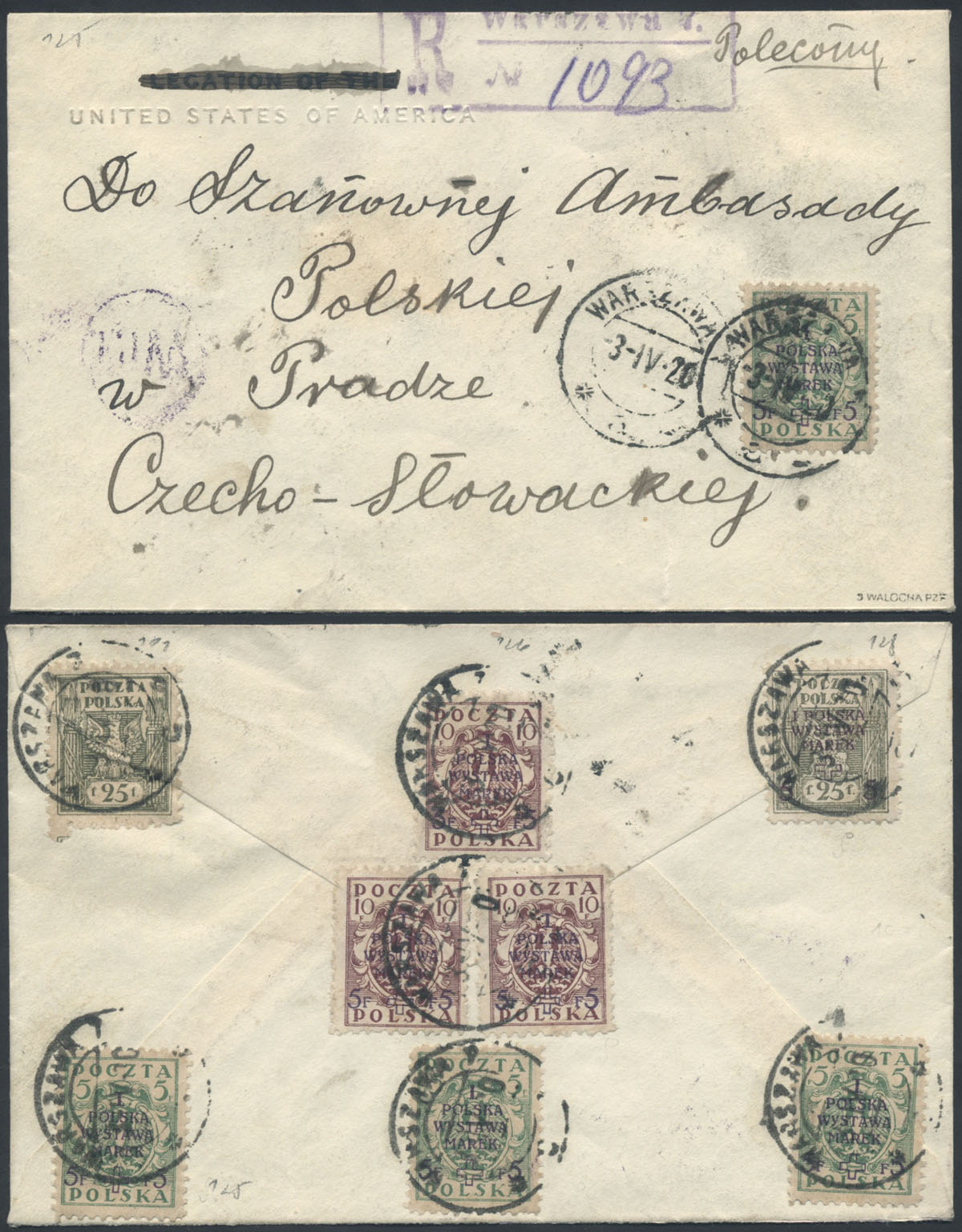 1920 list polecony z Warszawy 7 do czeskiej Pragi, stempel warszawskiej cenzury wojskowej "Wr.1". | Fi.90B, 102B, 103B |