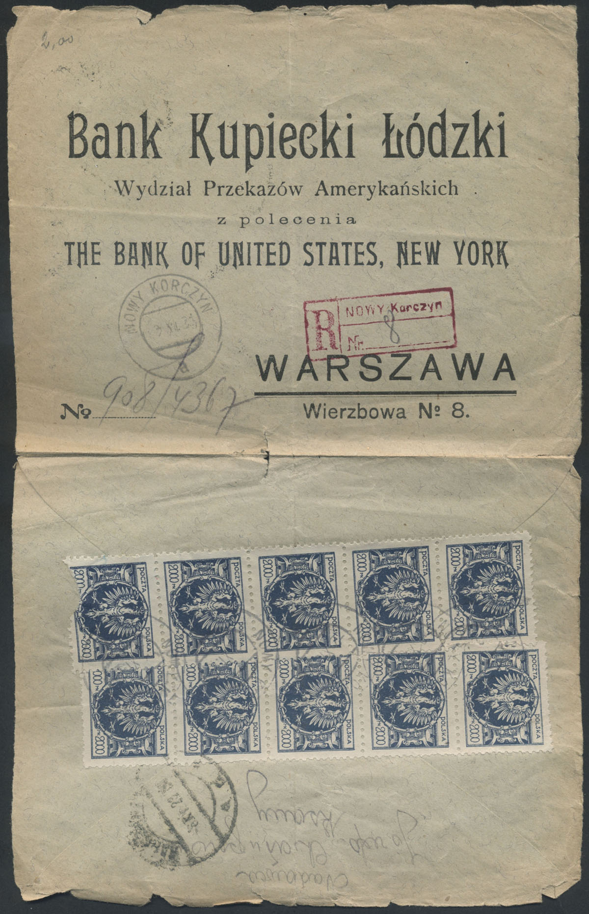 1923 list polecony z Muszyny nadany 3.09.23 do Stanów Zjednoczonych, gwarancja Petriuk. | Fi.143 Mi.181 |