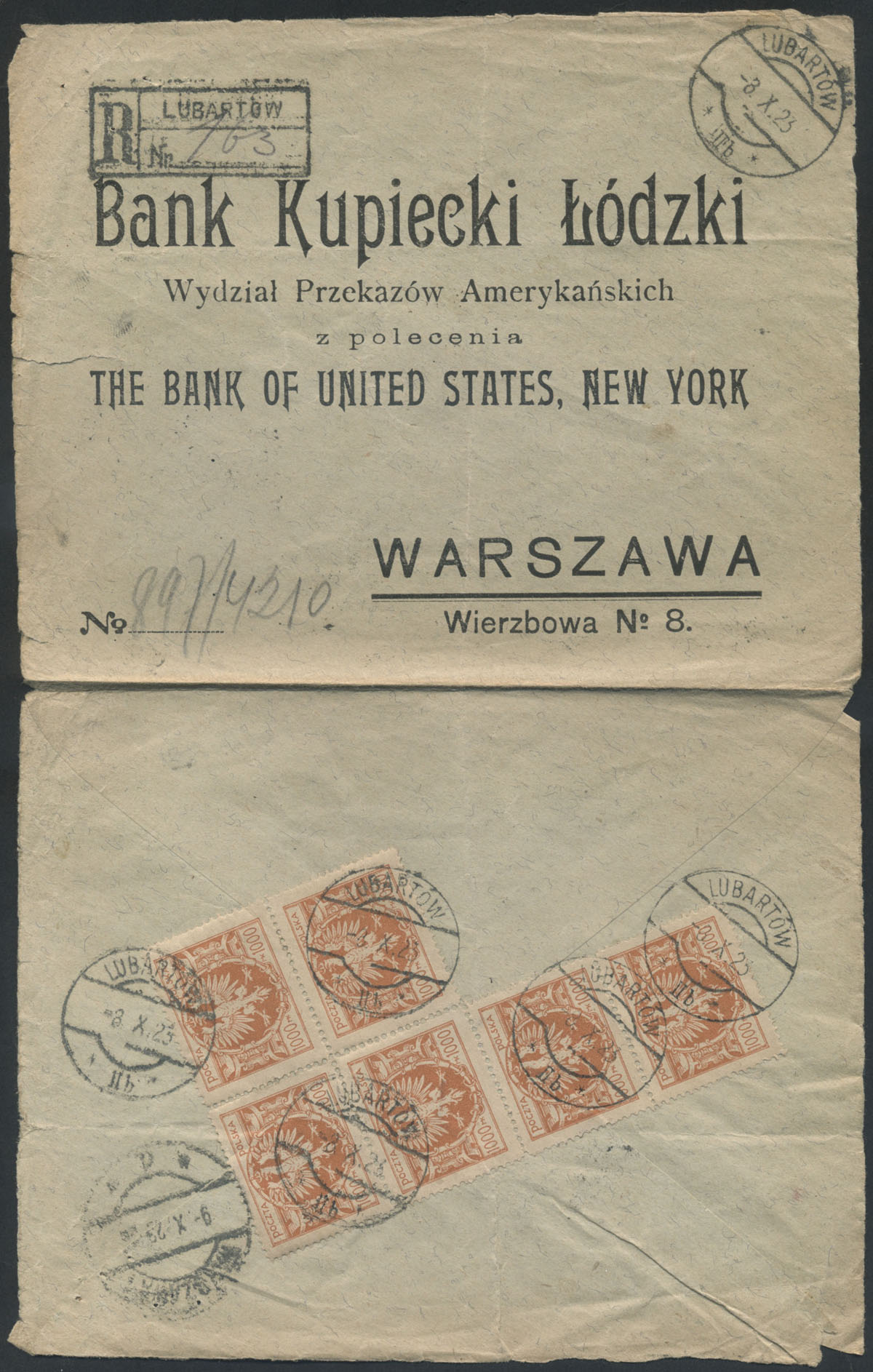 1923 firmowy list polecony z Lubartowa nadany 8.10.23 do Warszawy, koperta rozcięta po bokach. | Fi.142 |