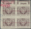 1923 duży orzeł na tarczy barokowej, czworoblok ciętych niegumowanych prób arkuszowych kreślonych czerwonym tuszem, gwarancja Ryblewski. | Fi.175P |