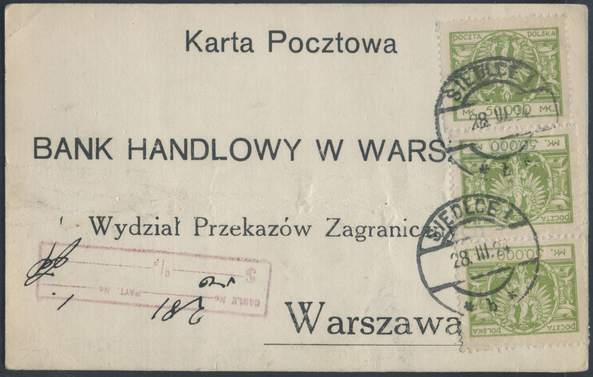 1924 hiperinflacja, kartka firmowa z Siedlec nadana 28.03.24 do Warszawy. | Fi.175 |