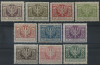 1924 Duży orzeł na tarczy barokowej, zestaw prób w parkach pionowych (Fi.2400.-), za 10000 mk. z fragmentem rzadkiego stempla WZÓR SKASOWANO, pozostałe kreślone, niektóre sygnowane, wszystkie gwarancja Schmutz. | Fi.172-5, 180-81 nz Mi.191-94, 199-200 U |