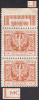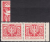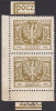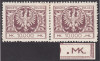 1924 Duży orzeł na tarczy barokowej, marginesowa parka znaczków za 100000 mk., dolny z niekatalogowanymi błędami, pierwszym na poz.19 opisanym w PZP pod numerem 19 "apostrof ' po lewym MK" - w PZP pozycja opisana jest nieprawidłowo jako 29, ale dzięki tej parce można to skorygować, oraz drugim "przerwane trzecie 0"; górny ma maleńką wypustkę na prawym dolnym narożniku lecz liczony jest jak zwykły znaczek, gwarancja i opis Walocha. | Fi.176 B Mi.195 |