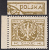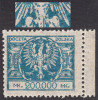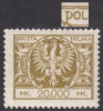 1924 Duży orzeł na tarczy barokowej, marginesowy znaczek za 20000 mk. z niekatalogowanym błędem na poz.41 "kropka przed literą P w POLSKA", gwarancja i opis Walocha. | Fi.173 B Mi.192 |