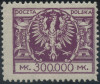 1924 Duży orzeł na tarczy barokowej, droższy znaczek za 300000 mk. z niekatalogowanym błędem na poz.63 "brak pazura w szponie", gwarancja i opis Walocha. | Fi.178 B Mi.197 |