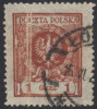1924 Orzeł w wieńcu, makulaturowy znaczek za 1 gr. drukowany na podwójnie zmarszczonym papierze, czytelnie skasowany w Łodzi, bardzo ładny stan zachowania, gwarancja i oznaczenie MK Walocha. | Fi.182 MK Mi.201 |