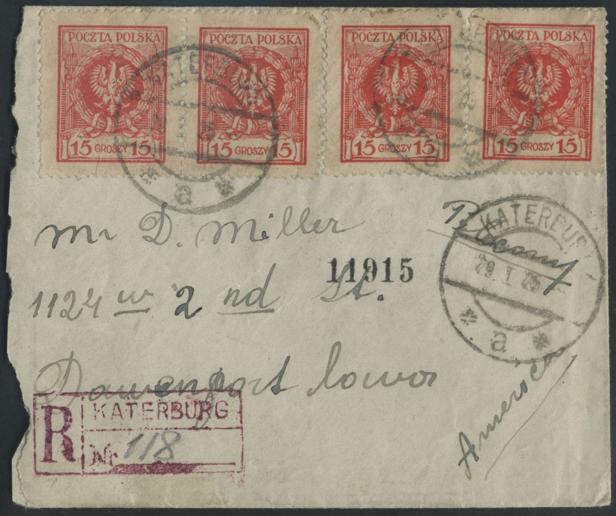 1925 list polecony z Katerburga do Stanów Zjednoczonych, na odwrocie stemple odbiorcze. | Fi.187 |
