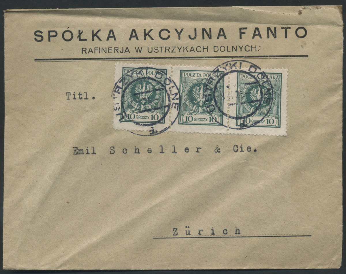 1925 firmowy list z rafinerii w Ustrzykach Dolnych do Szwajcarii. | Fi.186 |