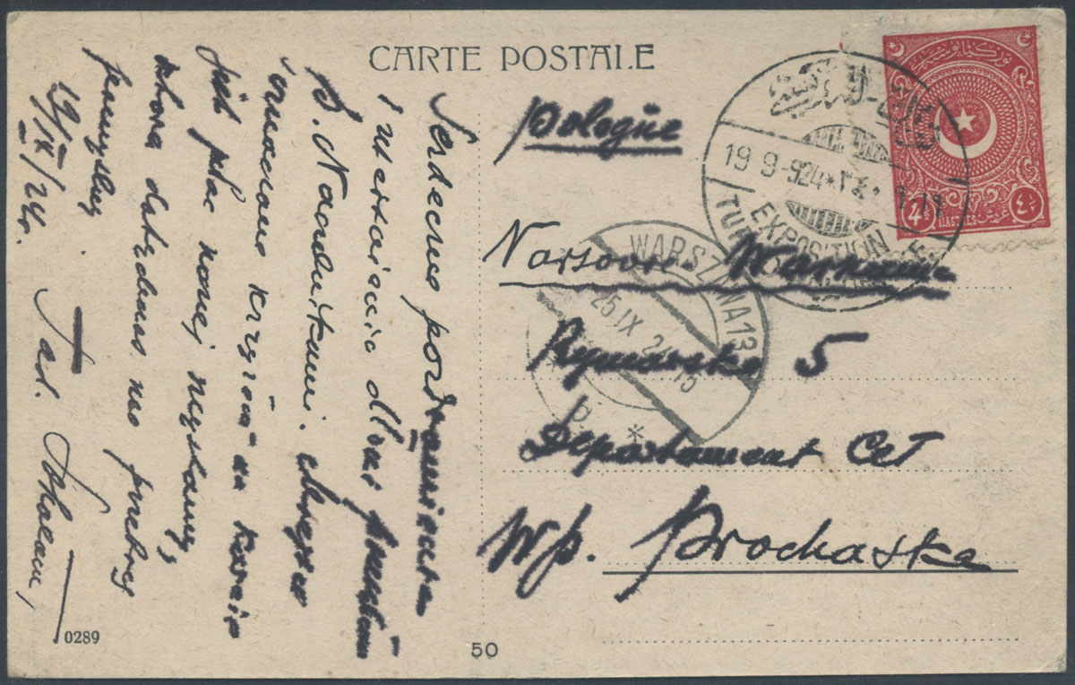 1924 kartka z Turcji do Warszawy. | |