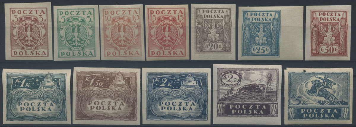 1919 wydanie w walucie koronowej, seria cięta. | Fi.73-84A Mi.65-76 |