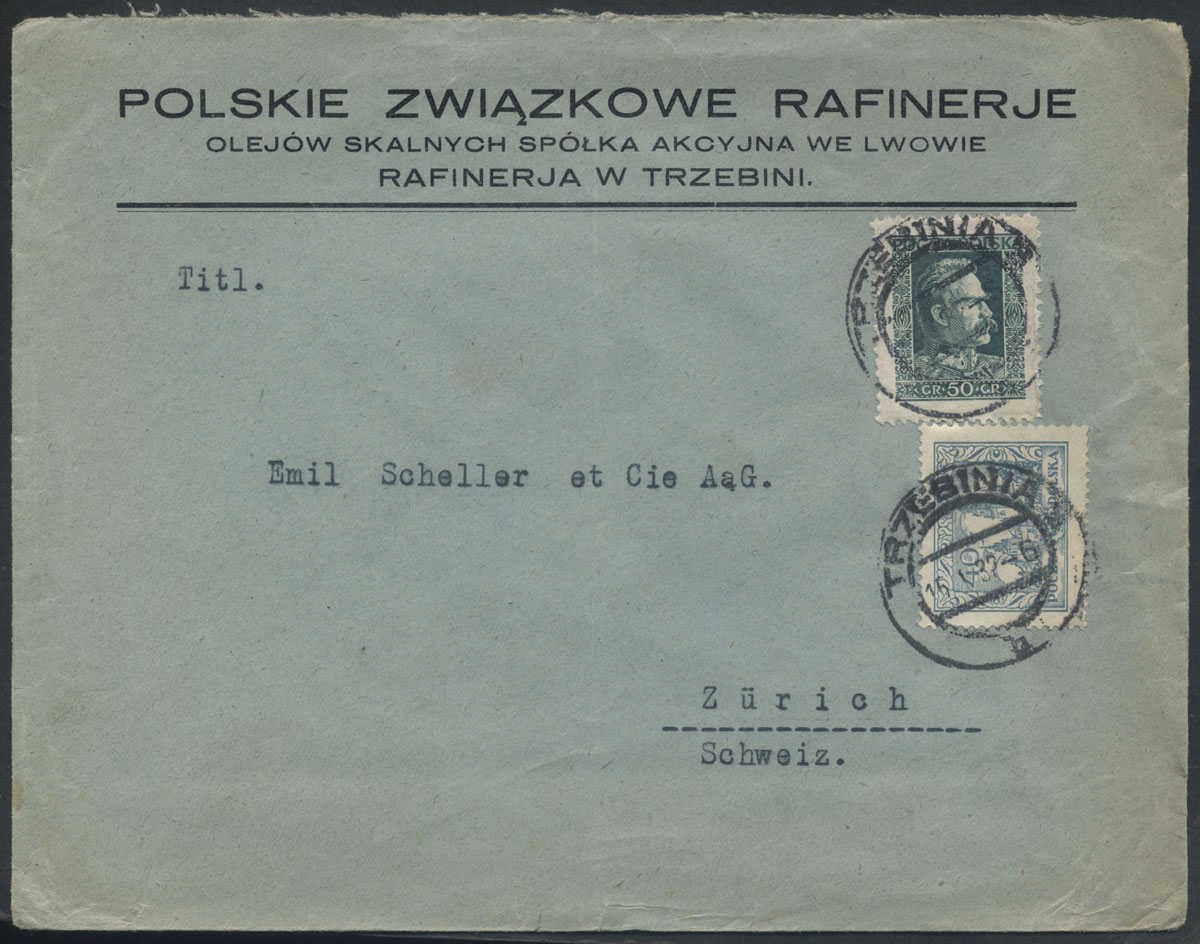 1932 firmowy list z rafinerii w Trzebini do Szwajcarii. | Fi.214, 238 |