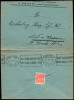 1932 list firmowy z Mysłowic do Lwowa opłacony znaczkiem opłaty stemplowej, opłata nie uznana i pobrana podwójna opłata znaczkami dopłaty na odwrocie koperty, ciekawy walor. | Fi.D69, D75 |