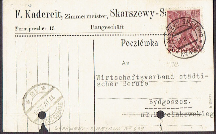 1932 kartka nadana w ambulansie pocztowym nr 439 na trasie Skarszewy - Smętowo. | |