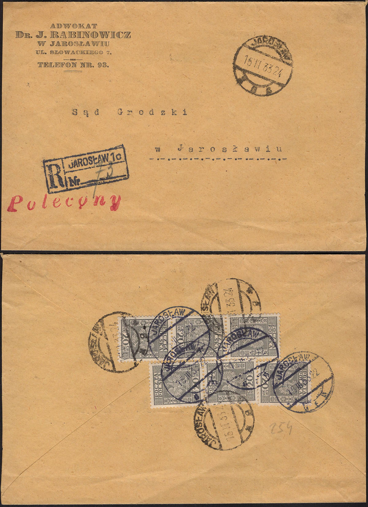 1933 miejscowy list polecony z Jarosławia. | Fi.254 |