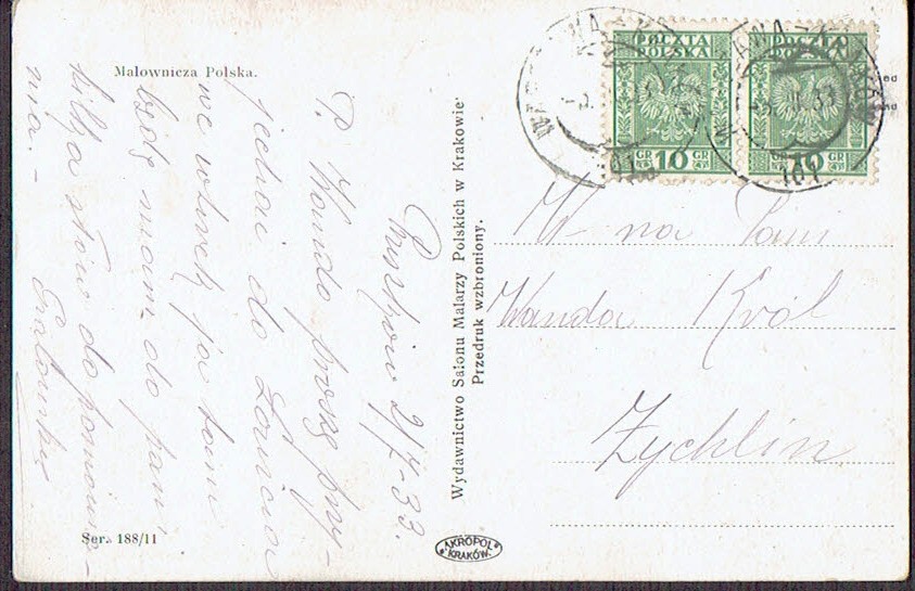 1933 kartka nadana w ambulansie pocztowym nr 101 na trasie Warszawa - Kraków. | |