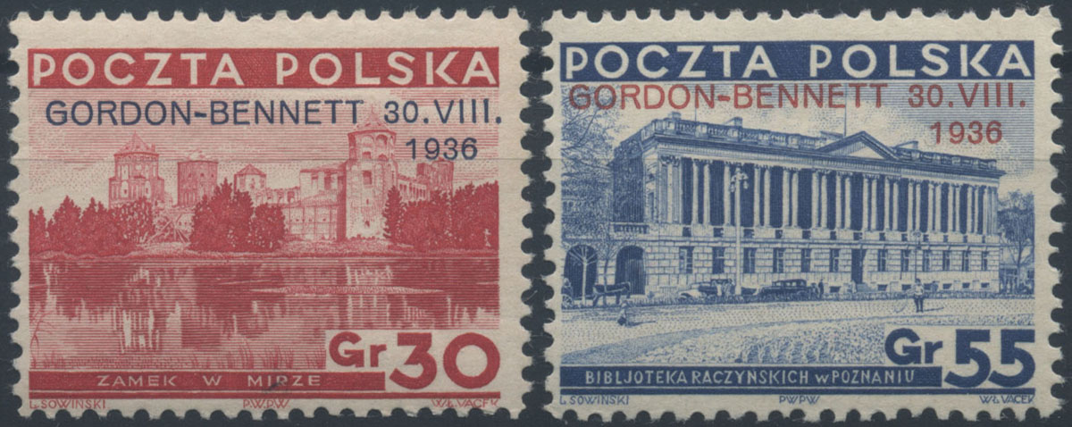 1936 zawody balonowe o puchar Gordon-Bennetta, seria kasowana, gwarancja Ryblewski. | Fi.292-93 Mi.313-14 |