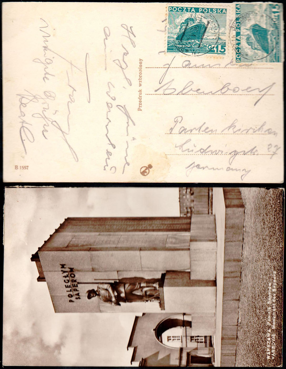 1936 Poczta peronowa Warszawa Główna, kartka z Warszawy do Niemiec, znaczki skasowane datownikiem pocztowym POCZTA PERONOWA - WARSZAWA GŁ, widokówka z Warszawy. | Fi.282 |