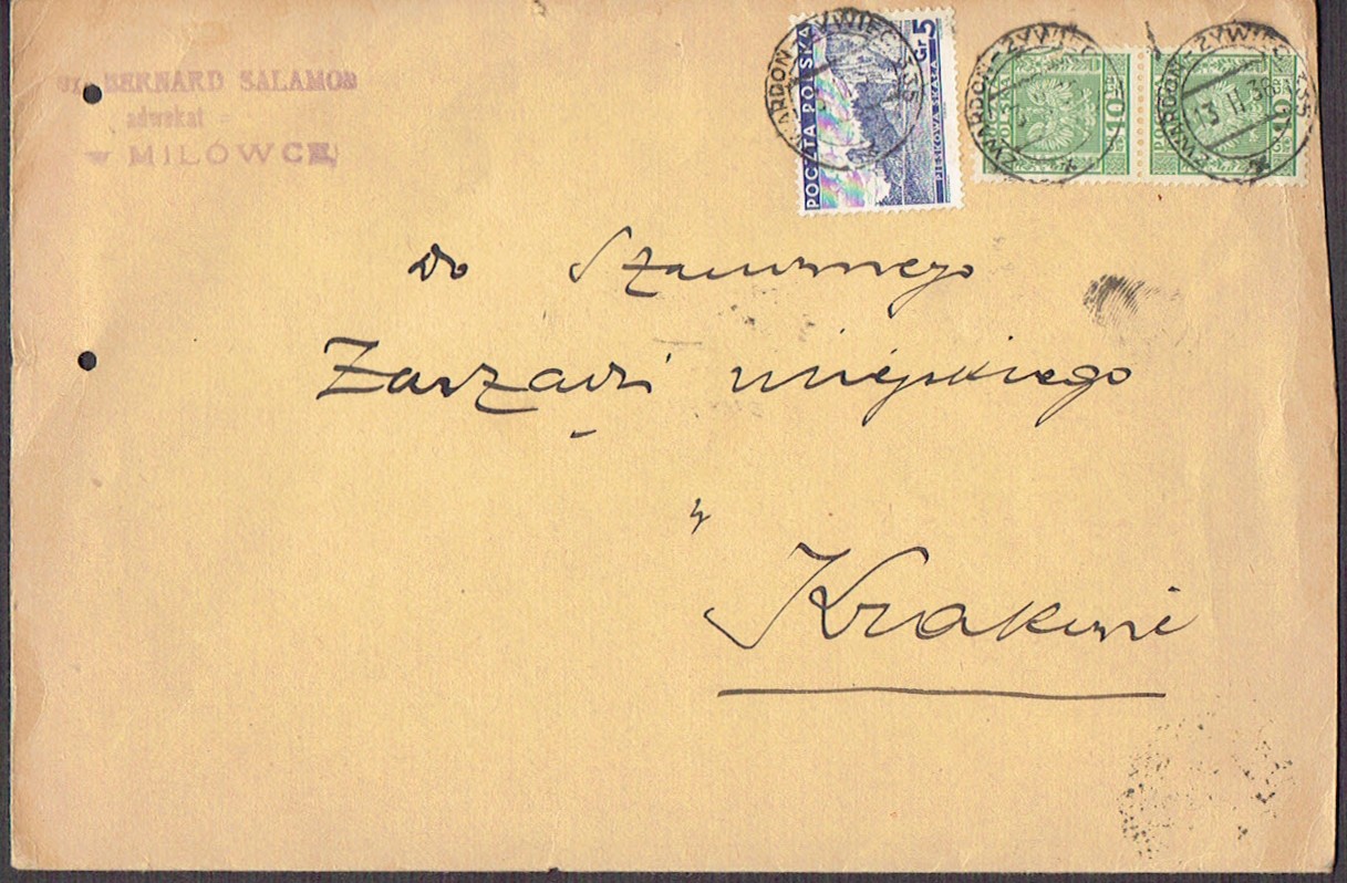 1937 list nadany w pośrednictwie pocztowym w Banku Handlowym w Warszawie do Francji. | Fi.245, 295 |