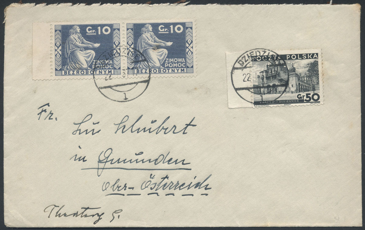 1937 list z Dziedzic do Austrii, znaczki na rzecz pomocy zimowej stemplowane przez pocztę. | Fi.287 |