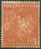 1938 20. rocznica odzyskania niepodległości, znaczek makulaturowy z przesuniętą perforacją poziomą i rozmazaną farbą bez gumy - znaczna część makulatury była wyłapana w trakcie produkcji i nie była gumowana, a same znaczki "wyszły" z drukarni w trakcie oblężenia Warszawy w 1939 roku. | Fi.315MK |