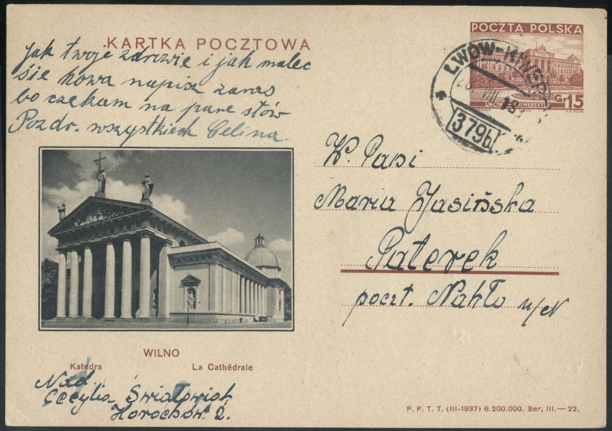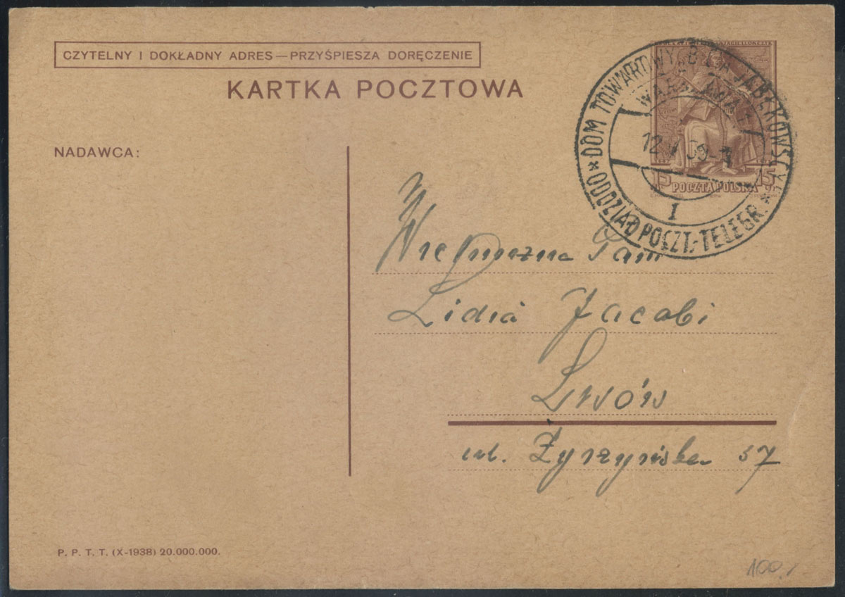 1939 kartka nadana z pośrednictwa pocztowego Domu Towarowego Braci Jabłkowskich w warszawie do Lwowa. | Fi.Cp81 |