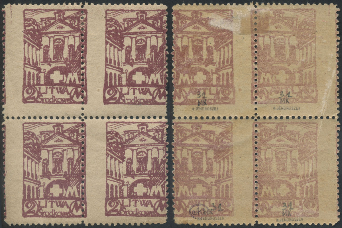 1921 wydanie na rzecz Polskiego Białego Krzyża, seria w czworoblokach. | Fi.31-3B |