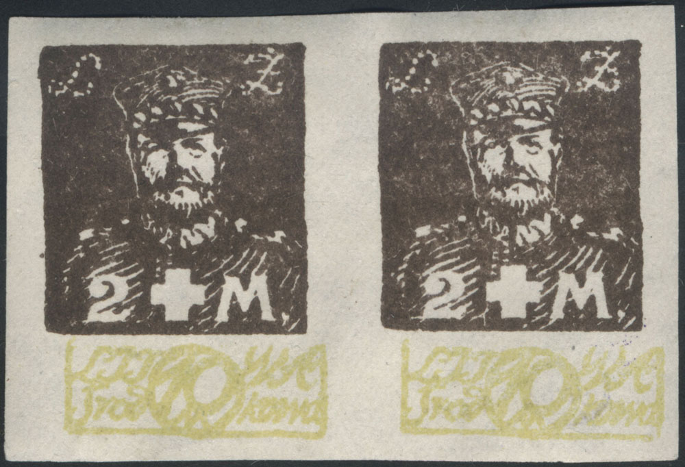 1921 wydanie na rzecz Polskiego Białego Krzyża, parka makulaturowych prób, gwarancja Jendroszek. | Fi.33A PMK |