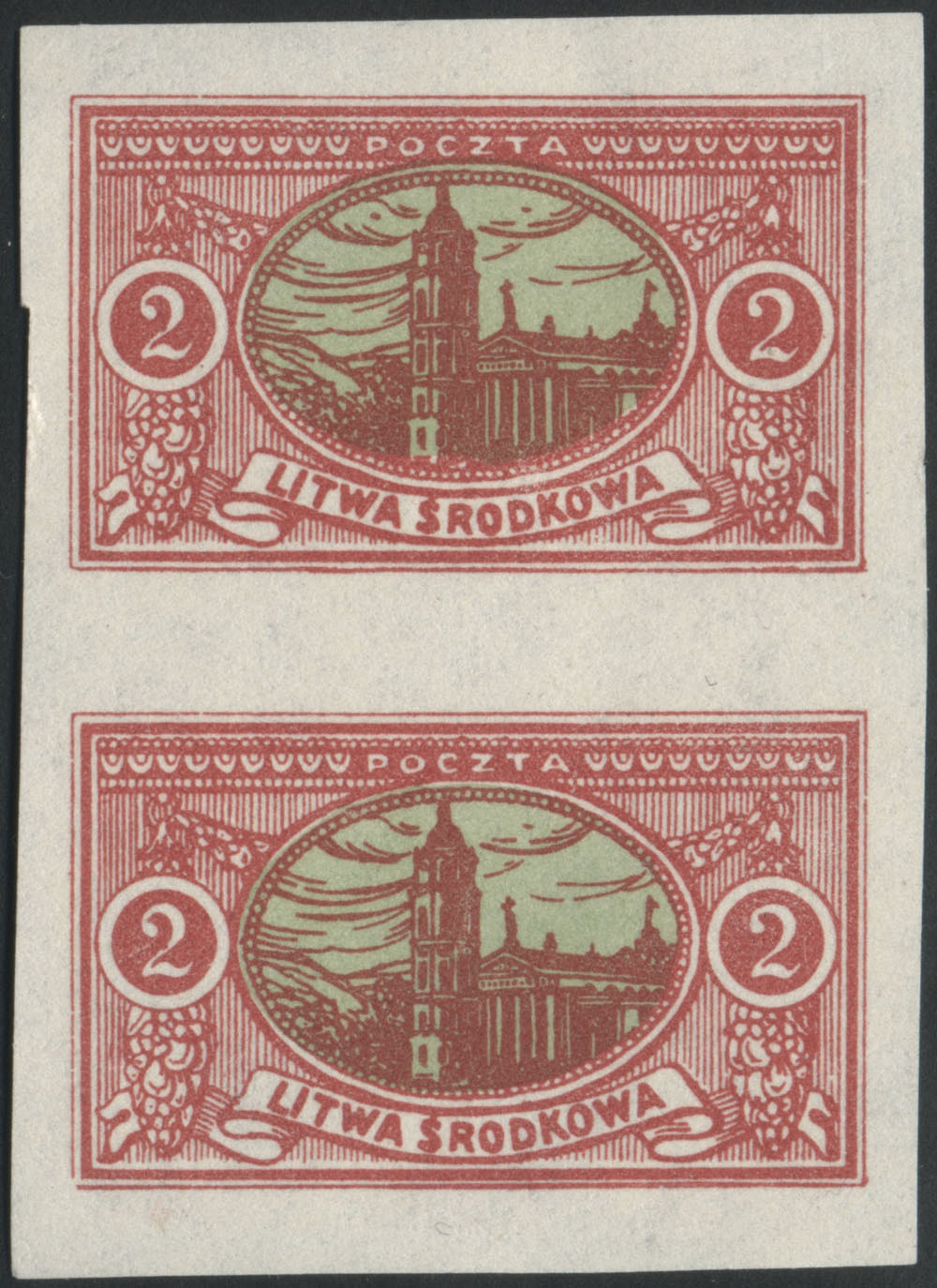 1921 Katedra Św. Stanisława w Wilnie, niegumowana makulaturowa parka z podwójnym drukiem tła, gwarancja Schmutz. | Fi.35A MK |