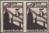 1921 różne rysunki, parka prób w barwie ciemno lilabrązowej na papierze szarym z drukiem podwójnym - na odwrocie druk próby innego nominału. | Fi.D5P/D1P |