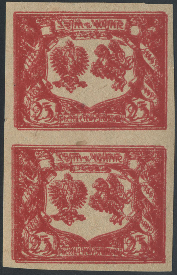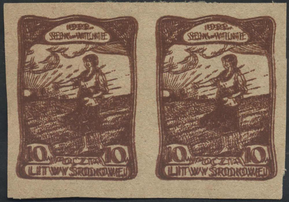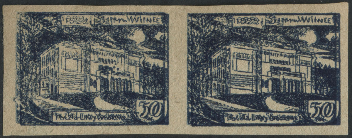 1922 otwarcie Sejmu Litwy Środkowej, parka znaczków za 50 mk. bez perforacji poziomej pomiędzy znaczkami, górny ze śladem podlepki, gwarancja. | Fi.46B Mi.46A |